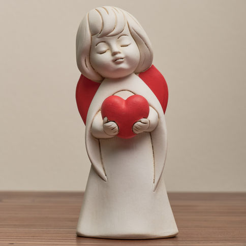 Raffinato angelo cuore realizzato in resina marmorizzata.