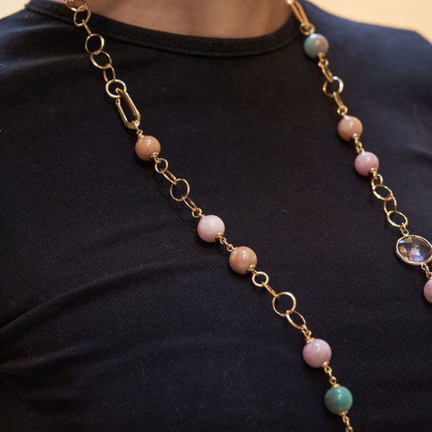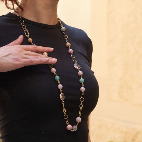 pietra occhio di gatto rosa e verde/cristallo Swarovski rosa.